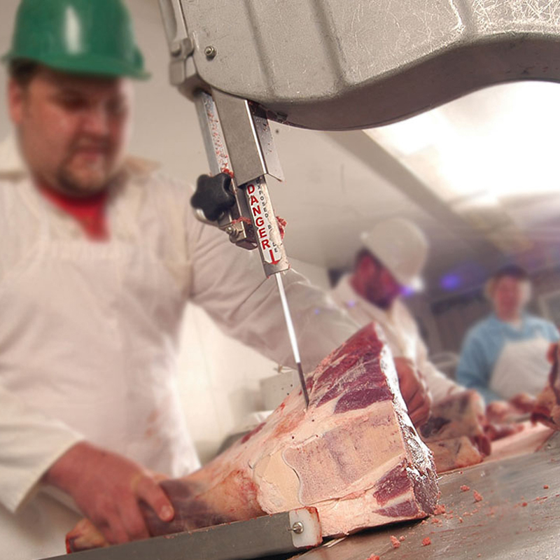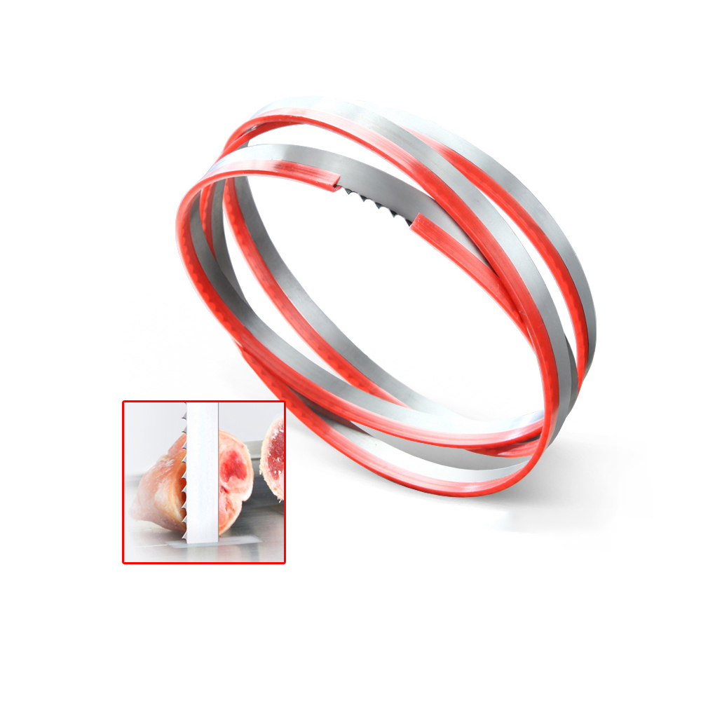 Band saw Blades for cutting fresh meat with bone, meat and frozen fish, carcasses. Made in carbon steel with hardened teeth tips.