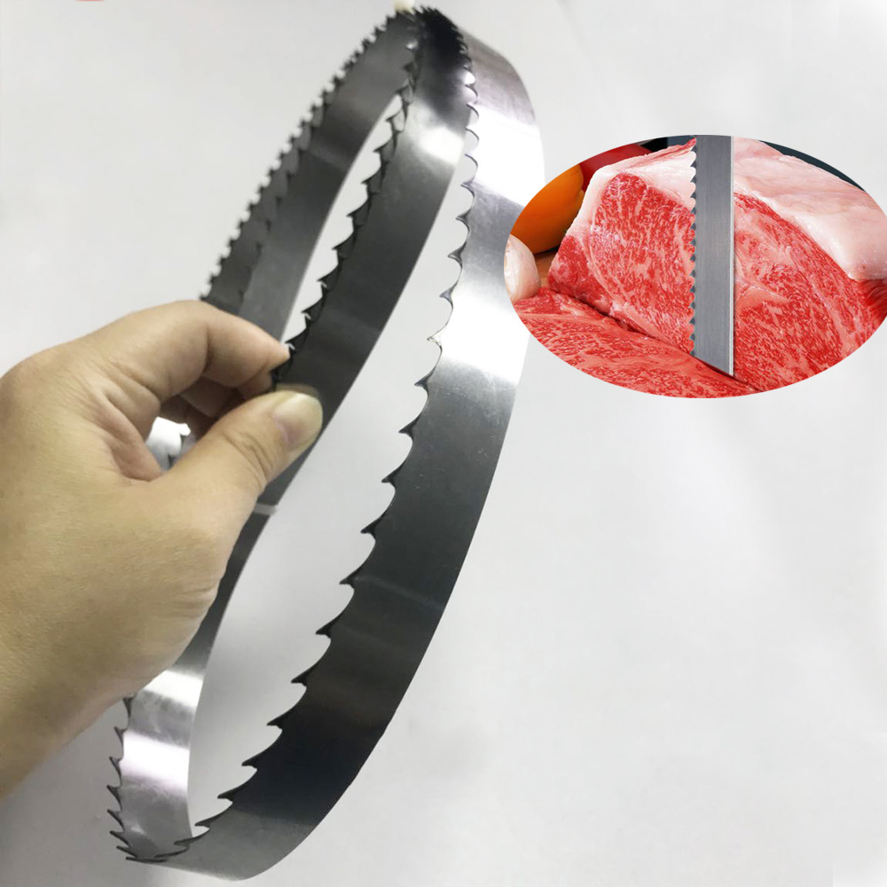 Narrow band saw blade manufacturing with high quality high carbon steel. All meat cutting band saw blades are designed to lower cutting costs by generating efficient cuts while producing less waste.