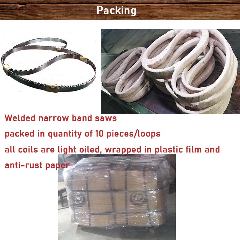 1) Welded narrow band saws packed in quantity of 10 pieces/loops